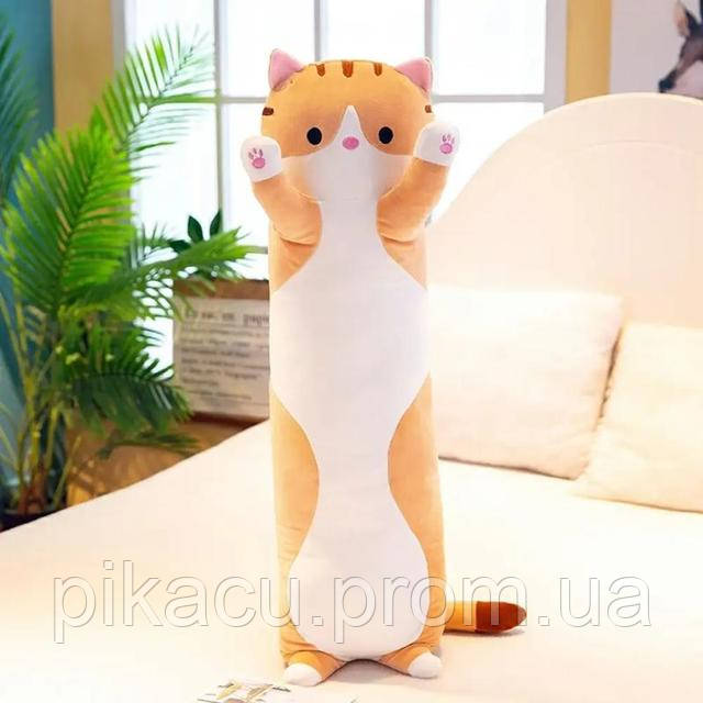 М'яка іграшка подушка обіймашка для сну котик Батон рудий 90 см